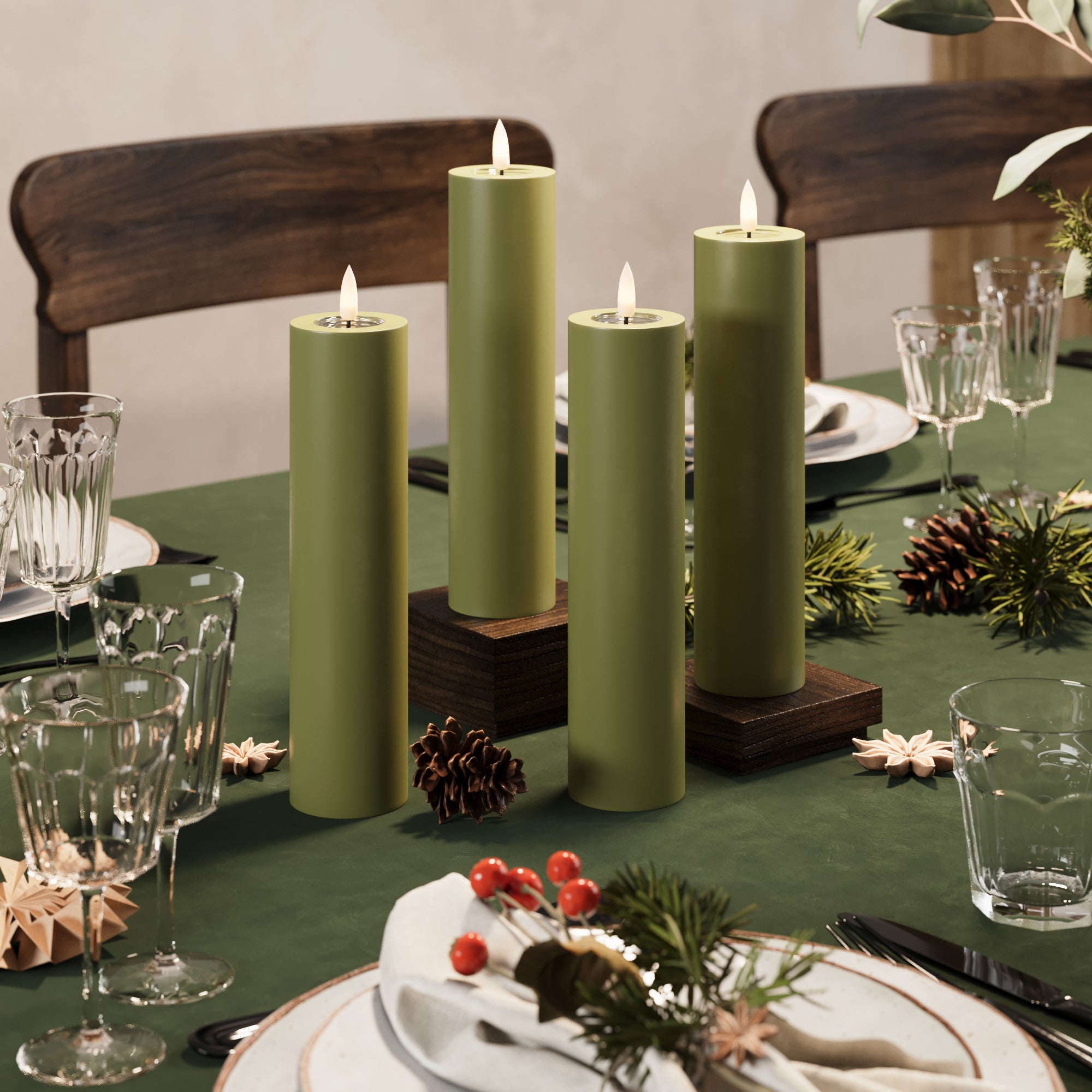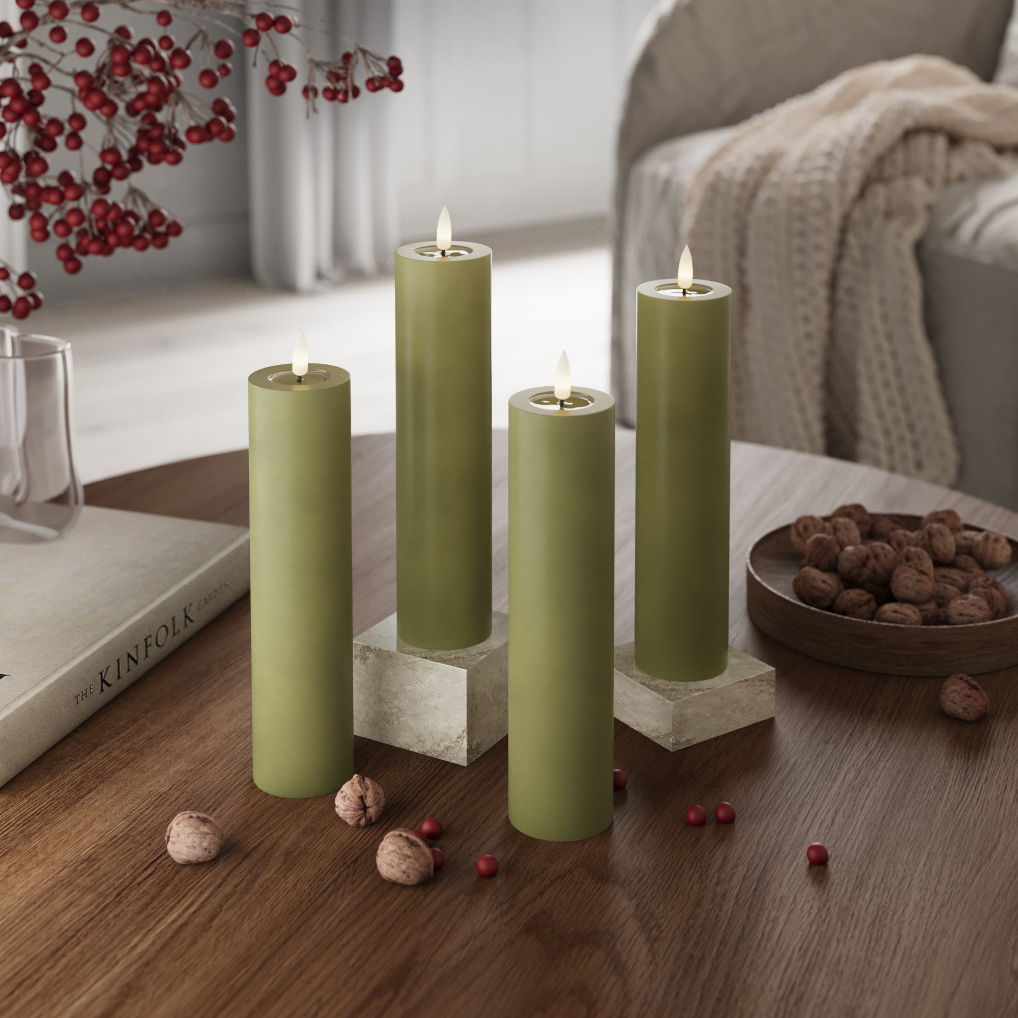 LED bloková světla Ø 5 x 20 cm Olivově zelená - 4 ks