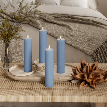 LED Blockkerzen Ø 5 x 20 cm Eisblau - 4 Stücke