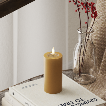 Produktet kan findes i: API de empleado, CONDUJO Vela pilar, CONDUJO Vela pilar Ø 5 x 10 cm, Curry, Estaciones, Luz interior LED, Otoño, Todo, Vela pilar - Todo