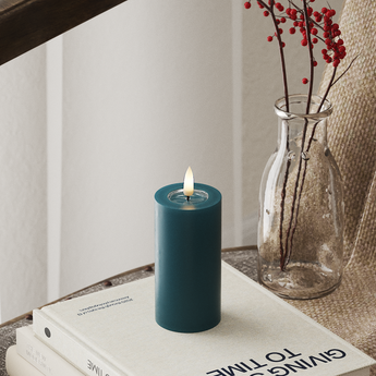 Produktet kan findes i: API de empleado, CONDUJO Vela pilar, CONDUJO Vela pilar Ø 5 x 10 cm, Estaciones, Luz interior LED, Petróleo, Todo, Vela pilar - Todo