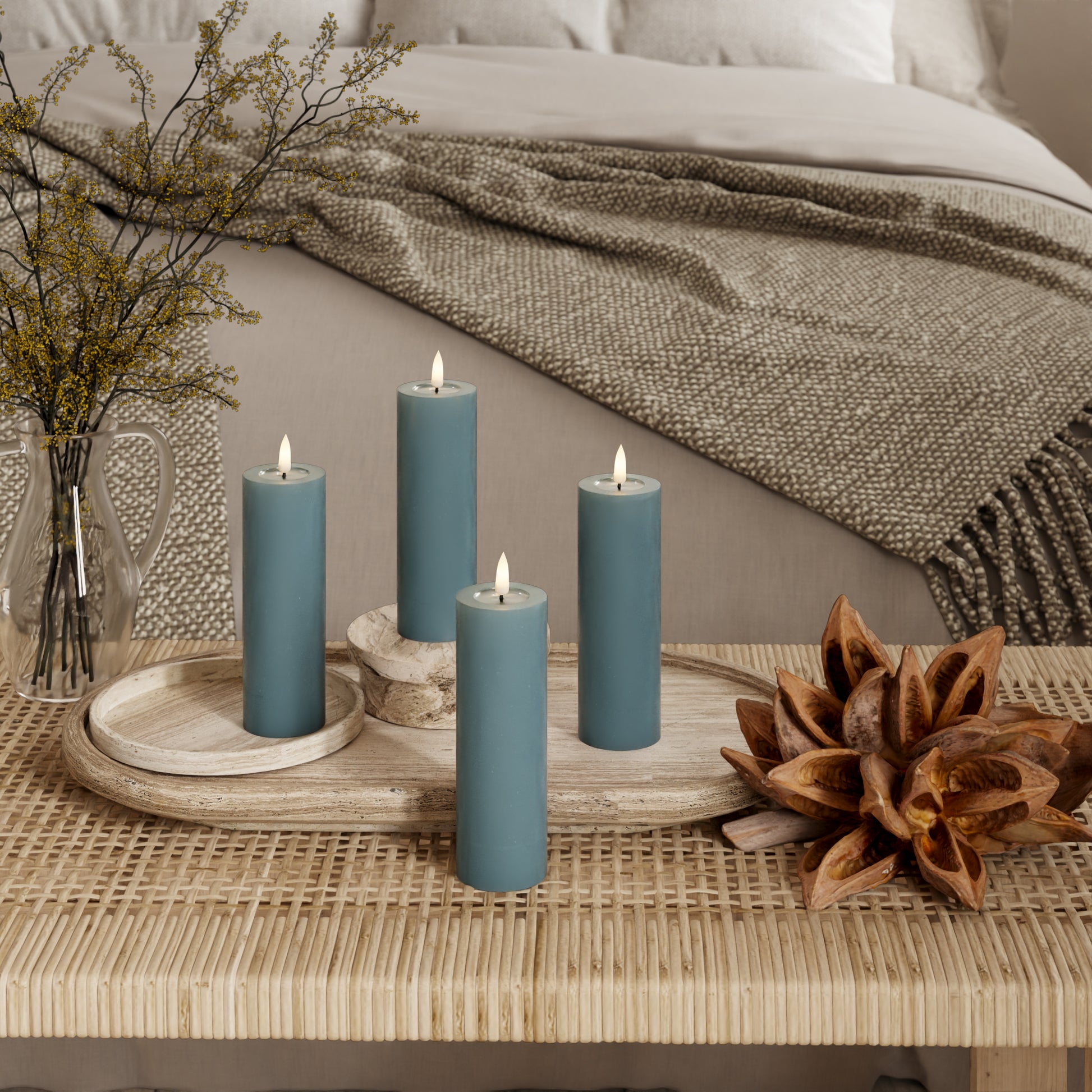 • LED Bloklys Ø 5 x 15 cm Jade Grøn + 4 stk