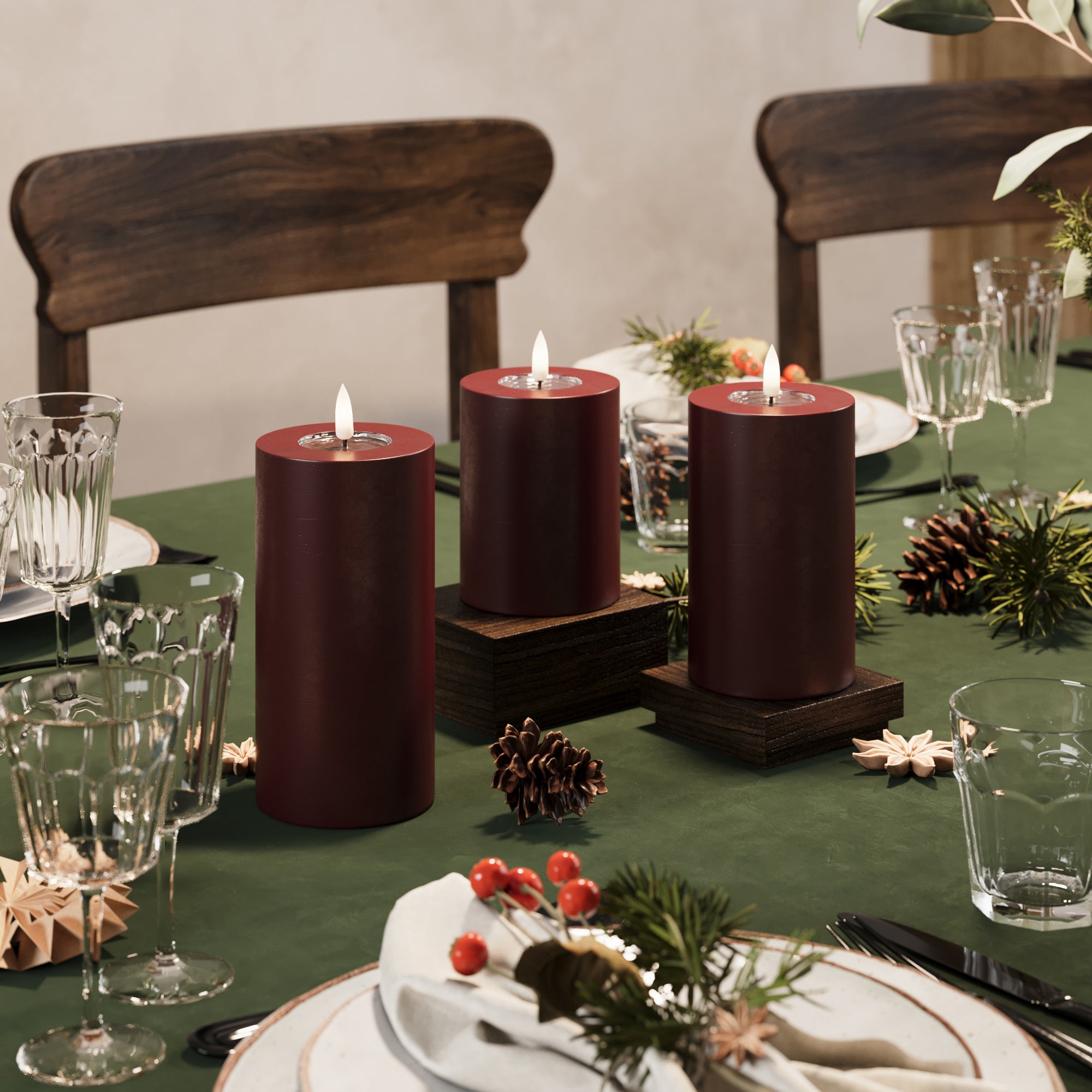 LED Pylväskynttilä Ø 7,5 x 10 + 12,5 + 15 cm Burgundi