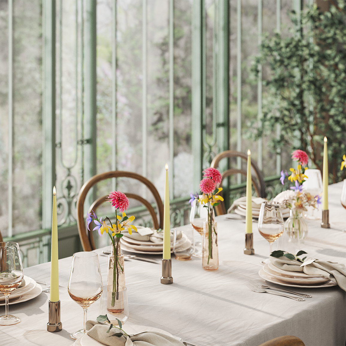 Den lysegule farve giver et lyst og elegant udtryk, der passer smukt til forårsbordet og sæsonens dekorationer.