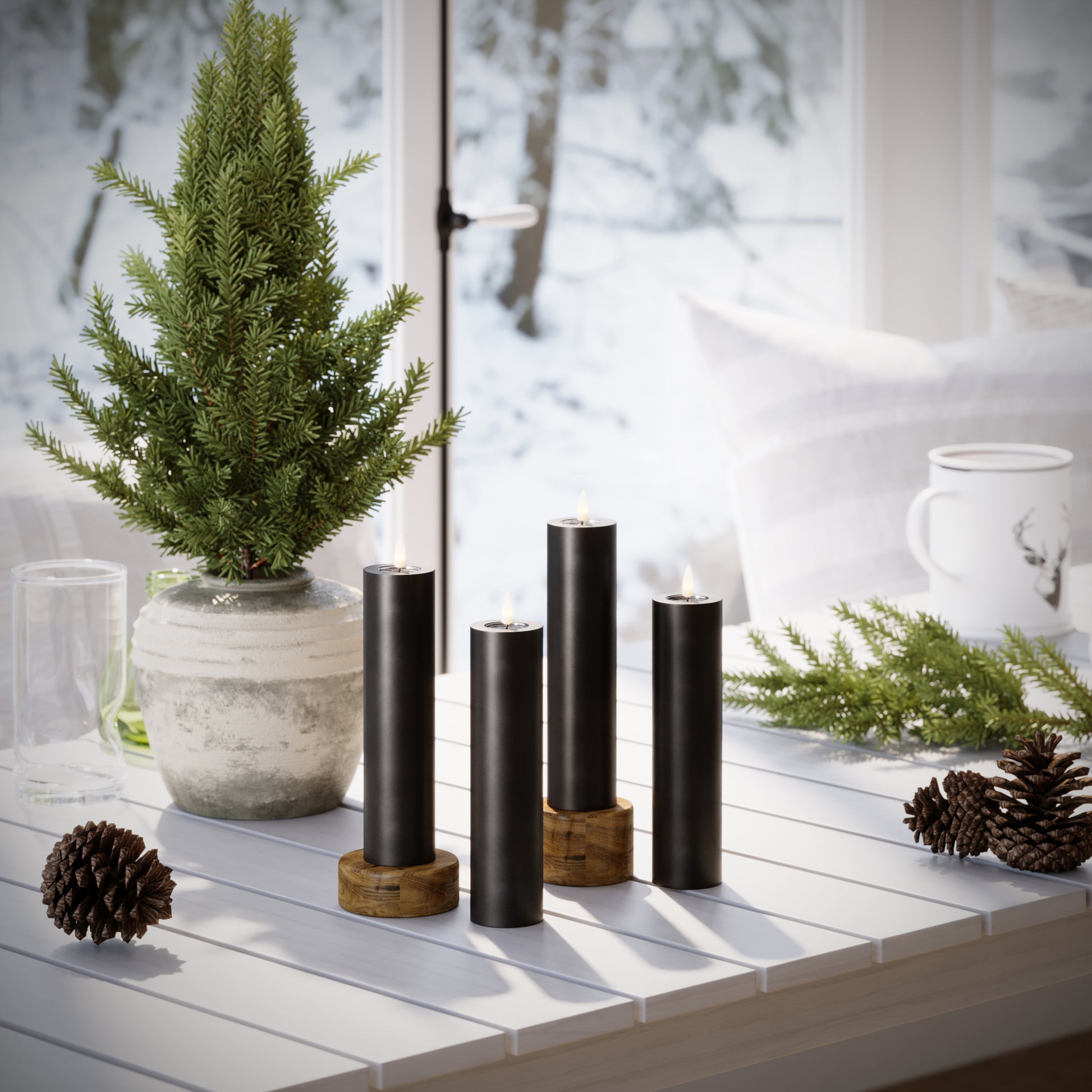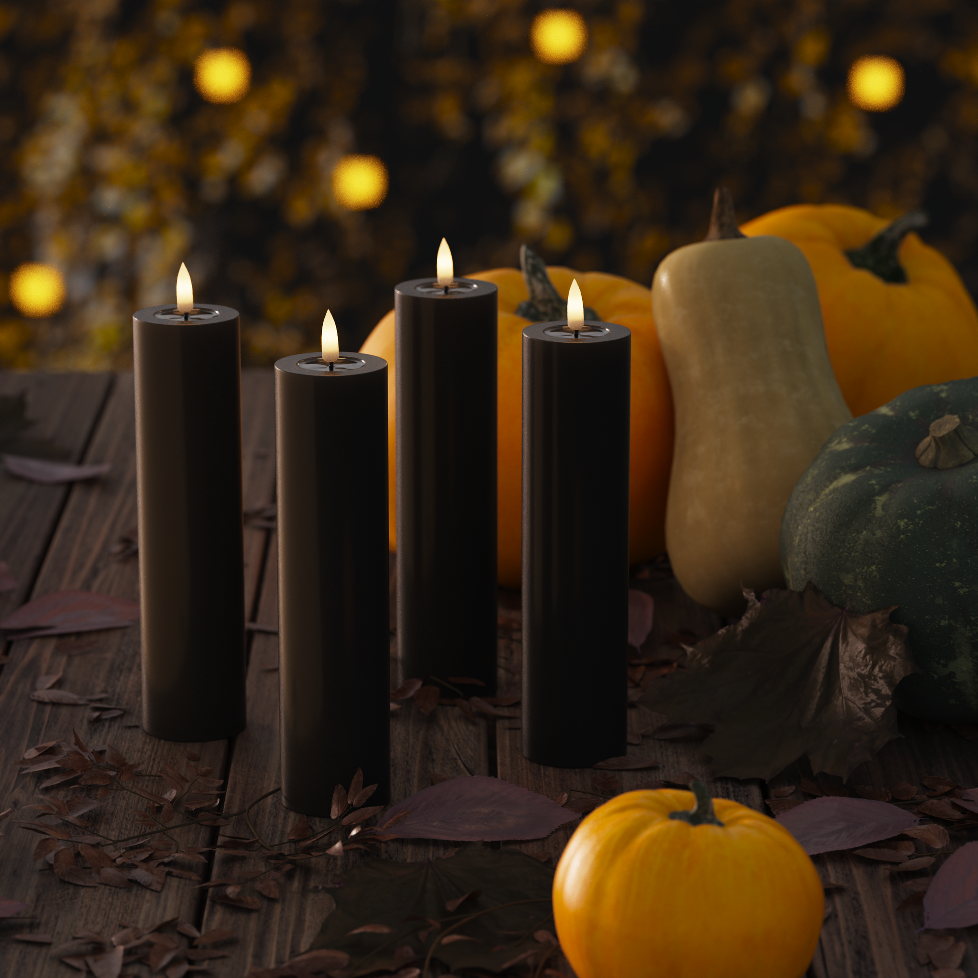 Bloklys er perfekte til dekorationer. Saml dem på et fad, i en lanterne eller i vindueskarmen for en rolig stemning.
